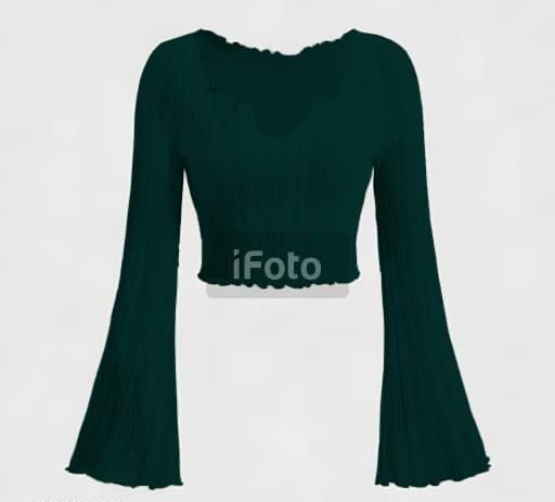 Name: Letest V-neck Notched Flared Sleeve Top