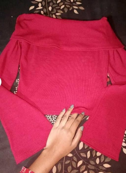 Letest v neck flared sleeve notch piko top for Girs availvle made by parker fabric