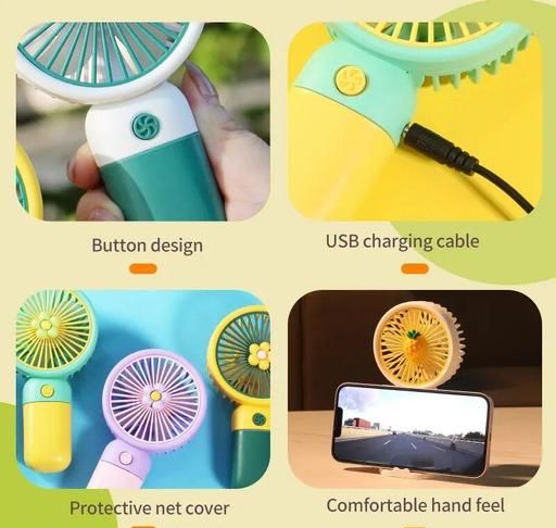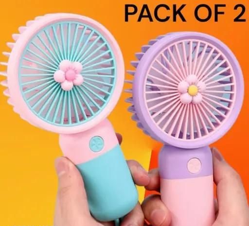 Name: PACK OF 2 Portable Cartoon Shaped Handheld USB Rechargeable Small Fan & Student Desktop Phone Holder (Pack Of 2)