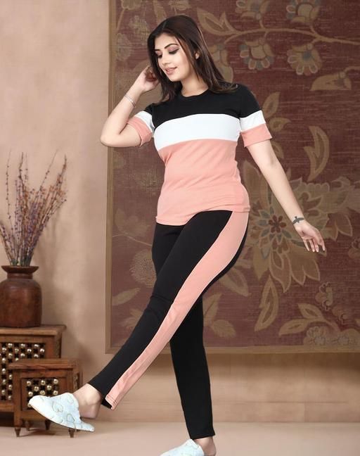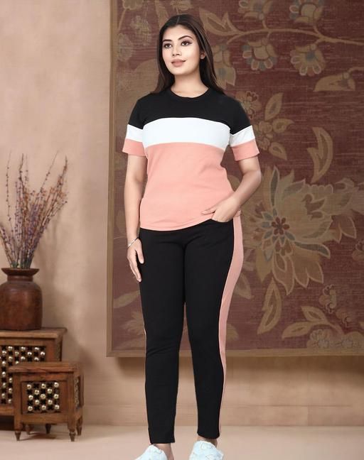 Name: Women's Striped Cotton Summer Tracksuit | Half Sleeve Top & Bottom Set | Lightweight Activewear | Gymwear, Yoga Wear & Casual Workout Outfit for Women