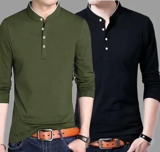 Name: Solid Men Mandarin Collar Full Sleeves Combo T-Shirt for Men (Pack of 2) | Mandarin collar t-shirt | Full sleeve t-shirt for men | Combo t-shirts for men | Trendy men's t-shirts (pack of 2)