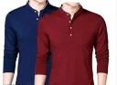 Solid Men Mandarin Collar Full Sleeves Combo T-Shirt for Men (Pack of 2) | Mandarin collar t-shirt | Full sleeve t-shirt for men | Combo t-shirts for men | Trendy men's t-shirts (pack of 2)
