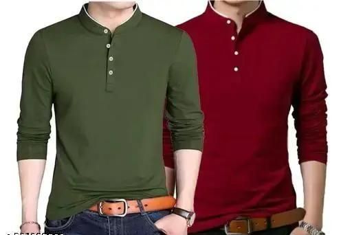 Name: Solid Men Mandarin Collar Full Sleeves Combo T-Shirt for Men (Pack of 2) | Mandarin collar t-shirt | Full sleeve t-shirt for men | Combo t-shirts for men | Trendy men's t-shirts (pack of 2)