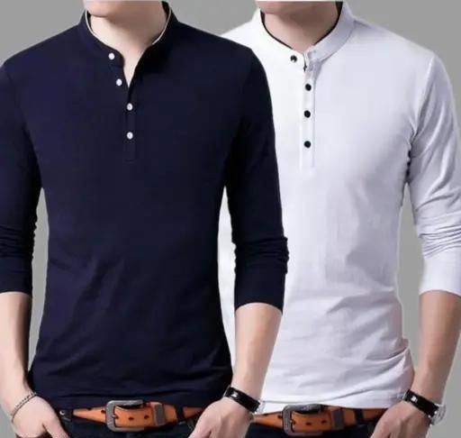 Name: Solid Men Mandarin Collar Full Sleeves Combo T-Shirt for Men (Pack of 2) | Mandarin collar t-shirt | Full sleeve t-shirt for men | Combo t-shirts for men | Trendy men's t-shirts (pack of 2)