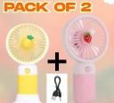 PACK OF 2 Portable Cartoon Shaped Handheld USB Rechargeable Small Fan & Student Desktop Phone Holder (Pack Of 2)