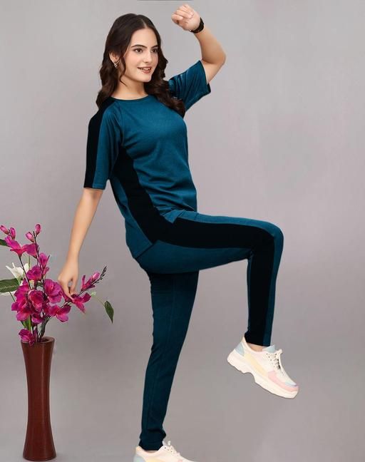 A Women S Track suit and night suit fabric is important Cotton lycra is very good fabric and Stretchable fabric women's tracksuit is a coordinated set of comfortable athletic clothing that typically includes a or T-shirt and matching Trouser. Made from materials like cotton, Blend, or blends, tracksuits often have a soft, stretchy feel for ease of movement. They're commonly worn for sports, workouts, or casual activities, offering both style and functionality. Design variations range from slim-fit to relaxed styles, and they come in a variety of colors and patterns to suit personal preferences .A women's tracksuit is a coordinated set of comfortable athletic clothing that typically hoodie and matching pants. Made from materials like cotton, Lycra , or blends, tracksuits often have a soft, stretchy feel for ease of movement. They're commonly worn for sports, workouts, or casual activities, offering both style and functionality. Design variations range from slim-fit to relaxed styles, and they come in a variety of colors and patterns to suit personal preferences Night Suits/Track Suits/Co ords/Night Dress/Gym Suits is made of Cotton Blend fabrics and includes ankle-length bottoms with a fold, both side pockets, heavy stretch elasticated on both full sides, and a drawstring at the waist. This versatile pair can be used for a varies .