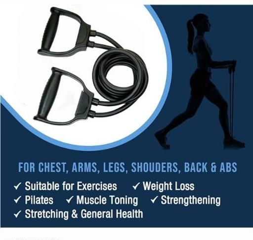 Name: Dragonfly Store Double Toning Resistance Tube Pull Rope Elastic Rubber Exercise Band for Stretching, Workout, Home Gym and Toning with Heavy Quality D Shaped Handles Random Color