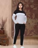 Women's Colorblock Loungewear Set - Black, Peach & White Women's Cotton Track Suit Set with Round Neck Full Sleeve Straight Length Relagur Fit and Drawstring Closure Pant