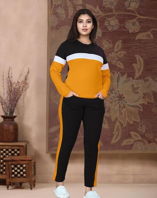 Name: Stylish Yellow & Black Colorblock Loungewear Set for Women | Soft & Comfortable Daily Wear Co-Ord Set with Pocket | Trendy Relaxed-Fit Lounge & Casual Outfit Tracksuit