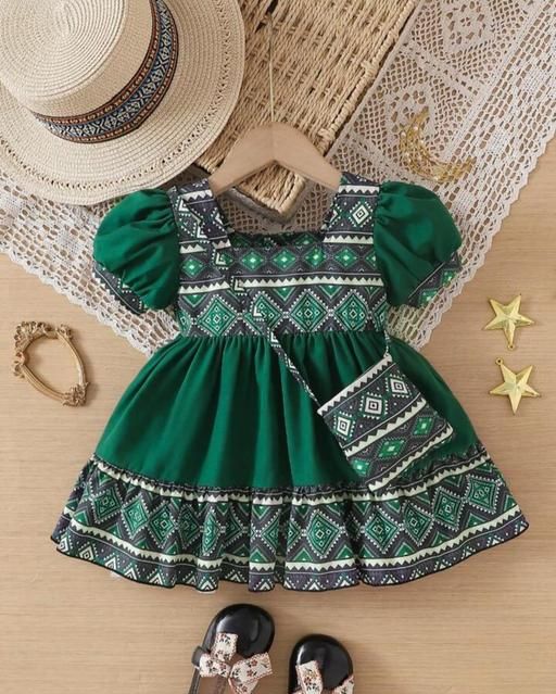 Name: 2pcs/Set Baby Girls Princess Style Square Collar Puff Sleeve Floral & Geometric Print Splicing Dress With Invisible Zipper For Matching Bag, Comfortable And Fashionable For Spring/Summer/Autumn