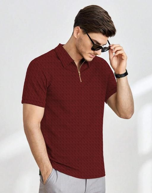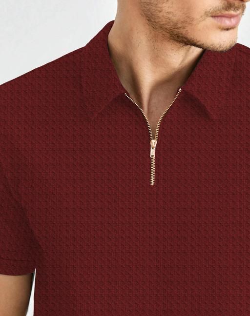100 % Cotton MANDARIN COLLAR PIQUE POLO T-shirt, has a polo collar, short sleeves