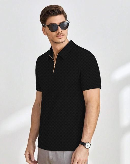 100 % Cotton MANDARIN COLLAR PIQUE POLO T-shirt, has a polo collar, short sleeves