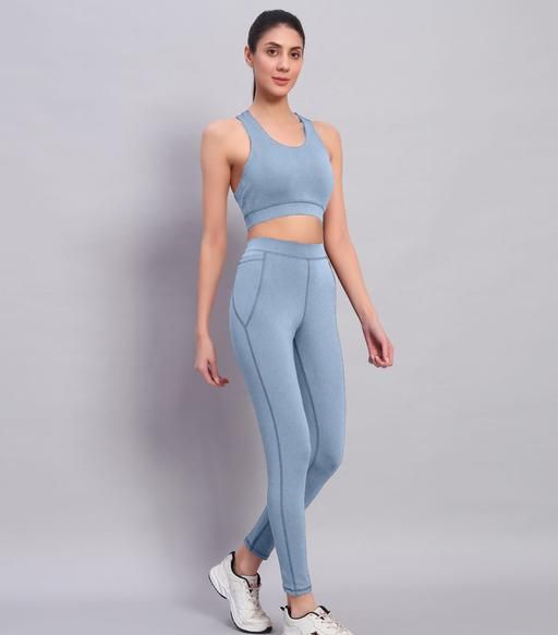 Women's Activewear Co-Ord Clothing Set (Padded Solid Sports Bra and Gym Legging Tights