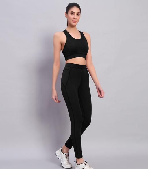Women's Activewear Co-Ord Clothing Set (Padded Solid Sports Bra and Gym Legging Tights