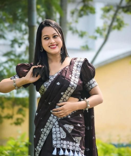 Name: Traditioanl Cotton Brown Assamese Mekhela Chador Saree