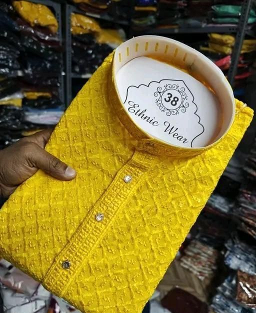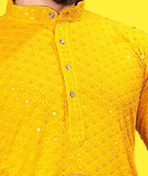 Name: : PREMIUM QUALITY LUCKNAWI CHIKANKARI YELLOW KURTA FOR MEN ( ONLY KURTA)