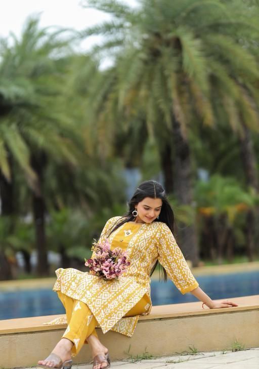 M (Bust Size: 19 in, Shoulder Size: 14 in, Kurta Length Size: 47 in, Kurta Hip Size: 21 in, Kurta Waist Size: 34 in, Bottom Waist Size: 25 in, Bottom Hip Size: 23 in, Bottom Length Size: 38 in)