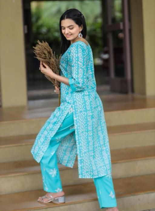 M (Bust Size: 19 in, Shoulder Size: 14 in, Kurta Length Size: 47 in, Kurta Hip Size: 22 in, Kurta Waist Size: 34 in, Bottom Waist Size: 25 in, Bottom Hip Size: 23 in, Bottom Length Size: 38 in)