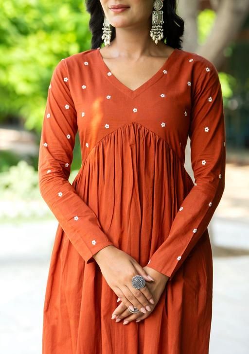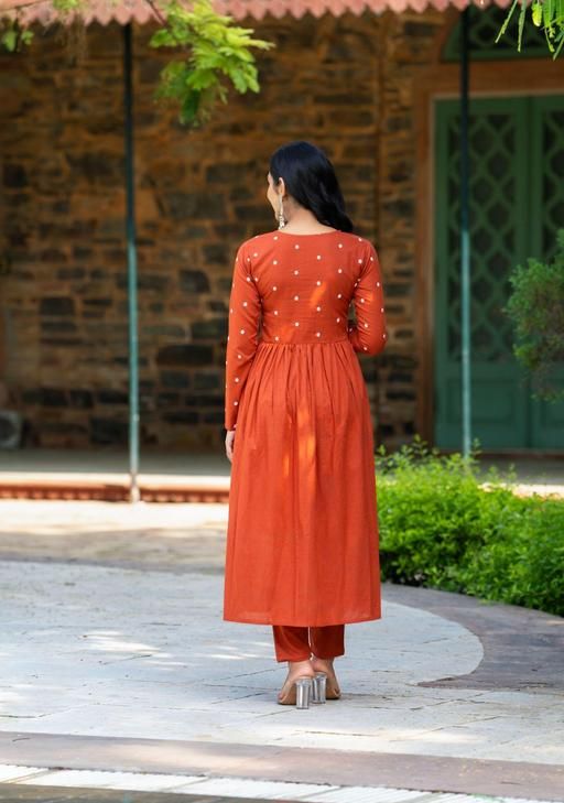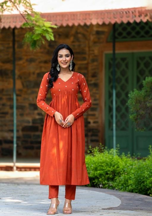 * Style: It appears to be an A-line kurta, which is slightly fitted near the chest and flares out towards the bottom. It also has pleats that give it volume and a comfortable look.