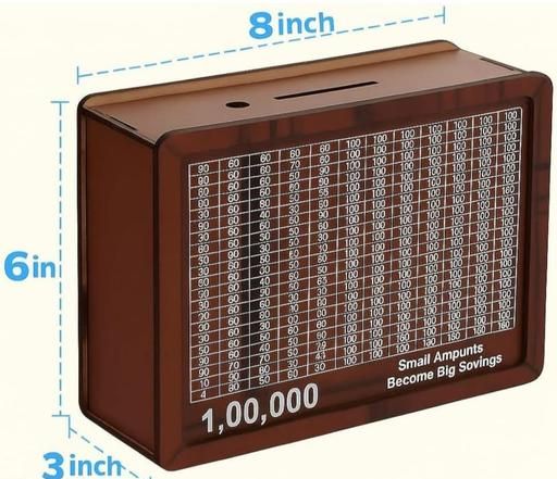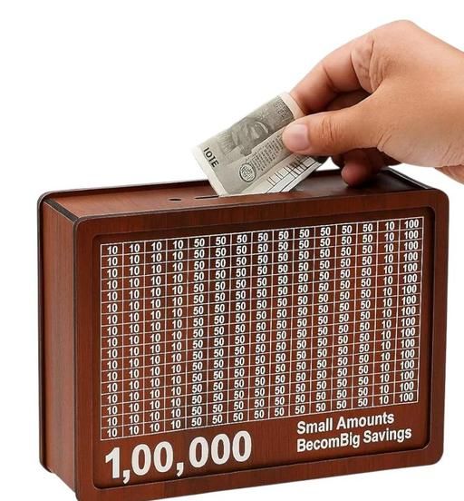 Start saving money the smart and simple way with this Wooden Money Saving Box. This box helps you save a total of ₹1,00,000 by adding small