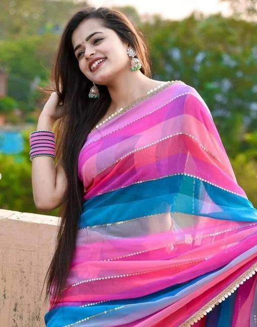 Name: Strip Print Bollywood Georgette Saree (Multicolor) | Striped Bollywood Georgette Saree (Multicolor) | STRIP georgette saree | multicolor saree | Bollywood saree | floral print saree | georgette saree with blouse |