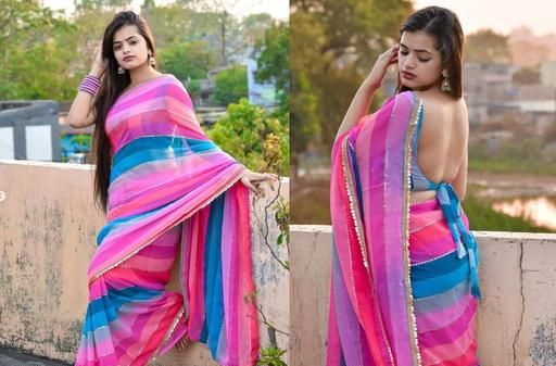 Name: Strip Print Bollywood Georgette Saree (Multicolor) | Striped Bollywood Georgette Saree (Multicolor) | STRIP georgette saree | multicolor saree | Bollywood saree | floral print saree | georgette saree with blouse |