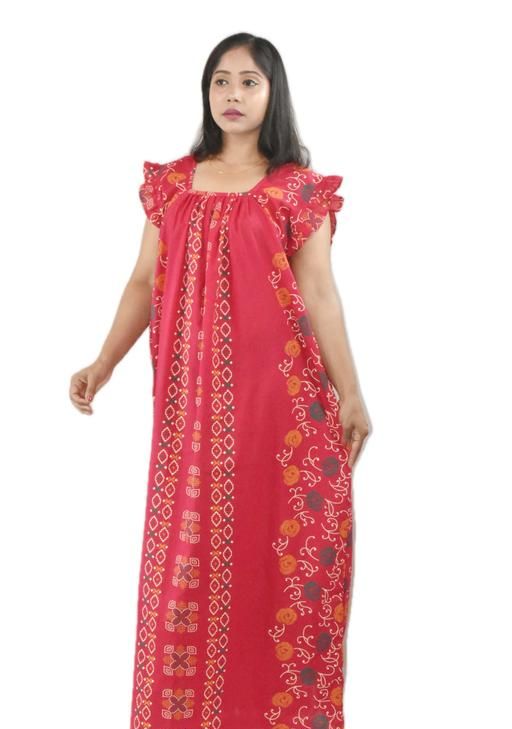 Upgrade your nightwear collection with this Women Square Neck Cotton Printed Nighty designed for everyday comfort and stylish home wear. Made from soft, breathable and skin-friendly cotton fabric, this ankle length maxi night dress keeps you cool and relaxed during summer and all seasons. The lightweight material ensures comfortable day and night use.