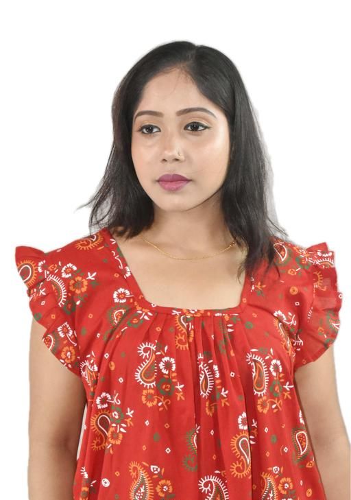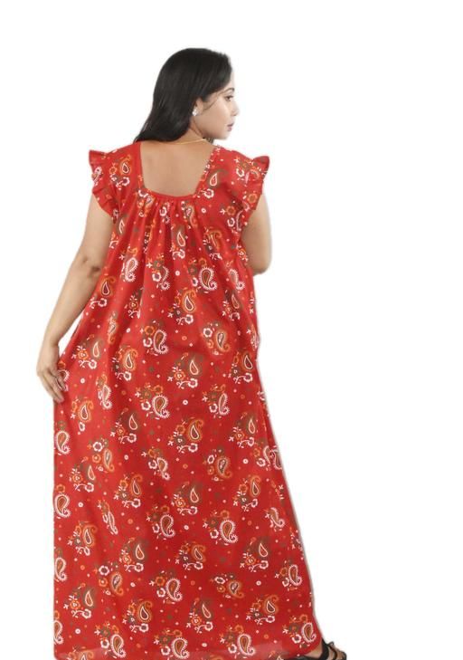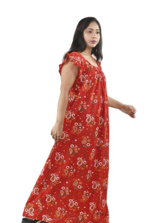 Name: Women Red Square Neck Cotton Printed Nighty | Ankle Length Maxi Night Dress | Soft Comfortable Ladies Sleepwear | Short Pleated Sleeve Home Wear | Free Size