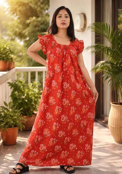 Upgrade your nightwear collection with this Women Square Neck Cotton Printed Nighty designed for everyday comfort and stylish home wear. Made from soft, breathable and skin-friendly cotton fabric, this ankle length maxi night dress keeps you cool and relaxed during summer and all seasons. The lightweight material ensures comfortable day and night use.
