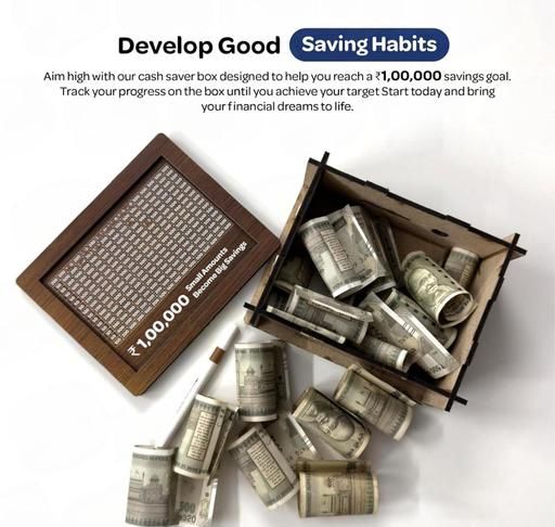 Achieve your financial goals effortlessly with this Premium Wooden ₹1,00,000 Money Saving Box. Designed with a clear and easy-to-follow tracker from ₹50 to ₹500, this daily deposit piggy bank makes saving money fun, motivating, and effective. Whether you’re saving for a dream vacation, a new gadget, or building financial discipline, this elegant wooden box helps you collect small amounts that add up to ₹1,00,000! Ideal for both adults and kids, this durable box is a perfect gift for birthdays, festivals, or New Year resolutions.