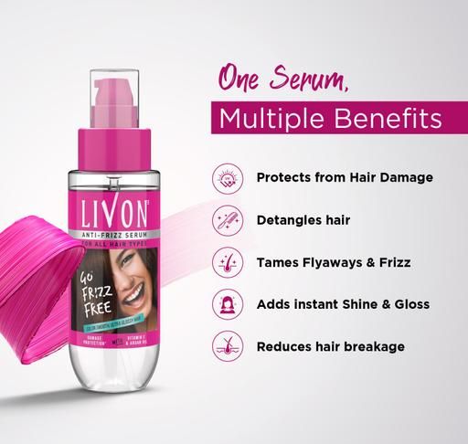 Product Name: Livon Serum for Frizz-free, Smooth Hair, with Argan Oil & Vitamin E, 50ml