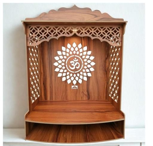 A graceful pooja mandir for home or office will definitely uplift the positive vibrations; Contemporary design of mandir for home wall mounted and craftsmanship in teak texture