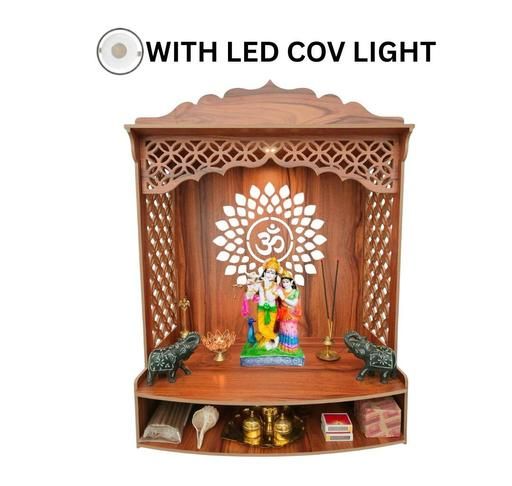Mounted Wooden Temple, Pooja Stand with Storage Cabinet, Home Decor, Big Size temple with LED Spot Light , Wooden LED Temple Handcrafted Design Pooja Mandir for Home & Office , pooja mandir , wooden pooja mandir