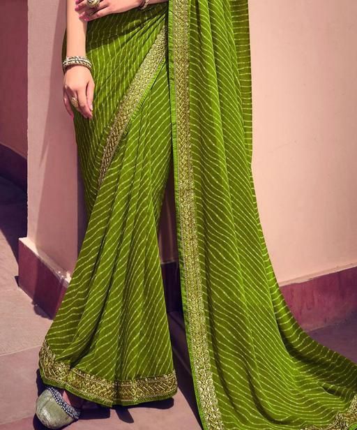 Bandhani Printed saree with Banarasi Lace Border and with unstitched blouse piece New Arrival Latest Georgette Printed Saree Fancy Women's Designer Saree Trending Saree Bollywood Saree daily use saree, fancy saree, naye design of saree nai design of saree