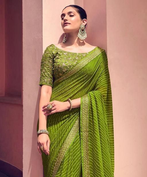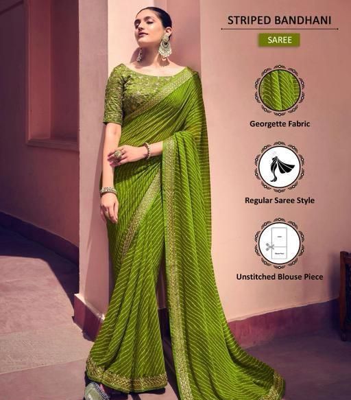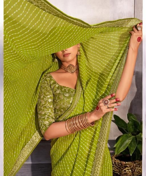Name: Bandhani Printed saree with Banarasi Lace Border and with unstitched blouse piece New Arrival Latest Georgette Printed Saree Fancy Women's Designer Saree Trending Saree Bollywood Saree daily use saree, fancy saree, naye design of saree nai design of saree