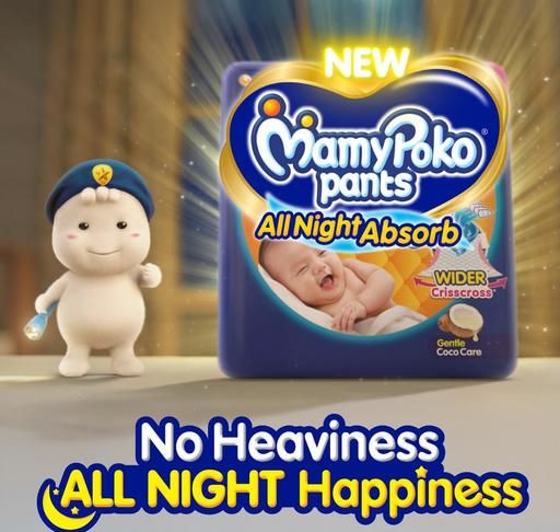 Designed for uninterrupted sleep, MamyPoko Pants All Night Absorb features a +50% wider CrissCross sheet that absorbs widely and repeatedly for up to 12 hours, preventing leakage caused by heaviness. Its advanced absorption technology keeps your baby dry and comfortable all night long.