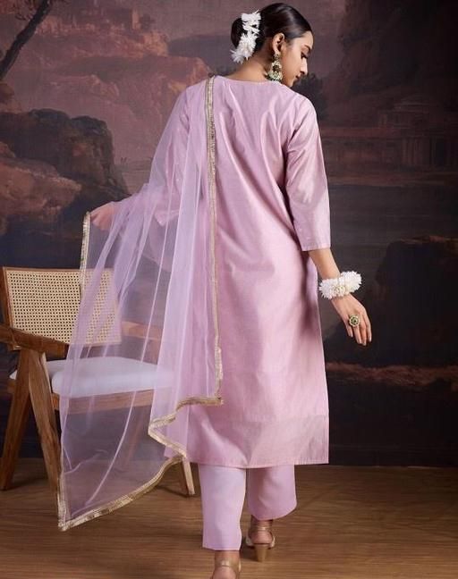 Name: Adorable chandheri silk embroiderd kurti set with net duppatta