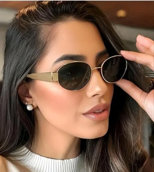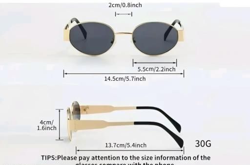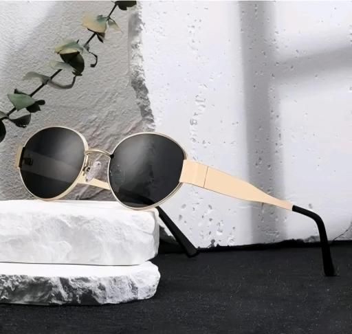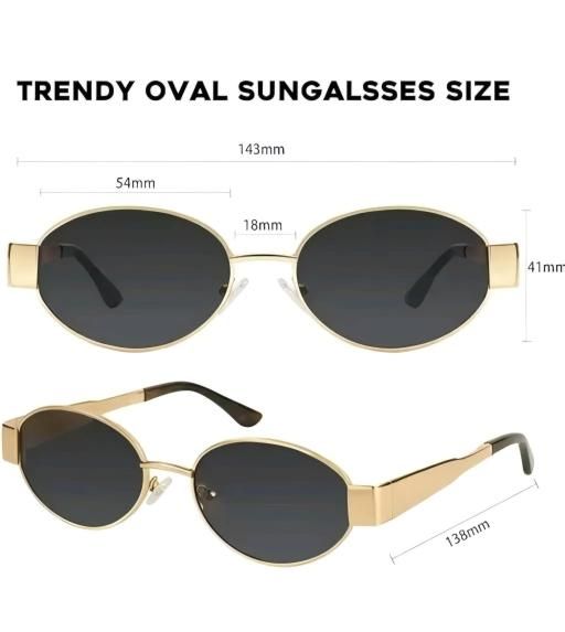 Name: Vintage Oval Metal Sunglasses for Men and Women, Gold Rimmed with Black Arms