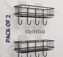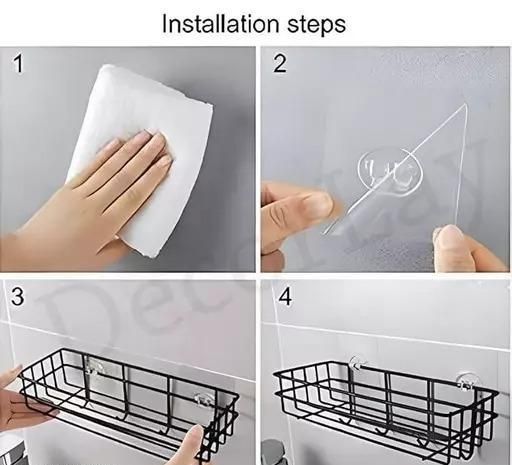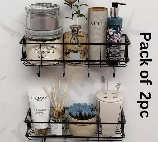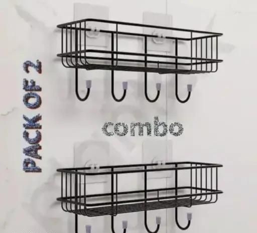 Name: (Combo Offer) 2Pis GI STEEL Powder Coated Self-Adhesive Shower Bathroom Shelf With Hooks, Hanging Toiletries Holder Makeup Storage Rack For Bathroom , Kitchen Spice Rack Shelf (PACK OF 2) (BLACK)