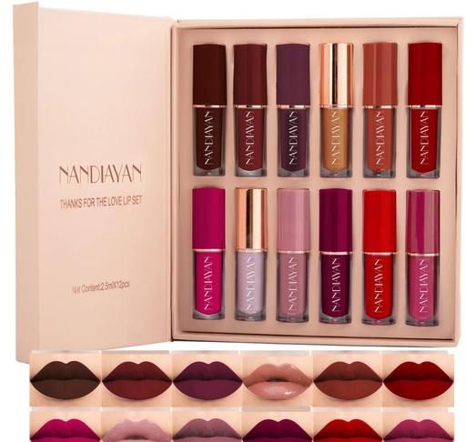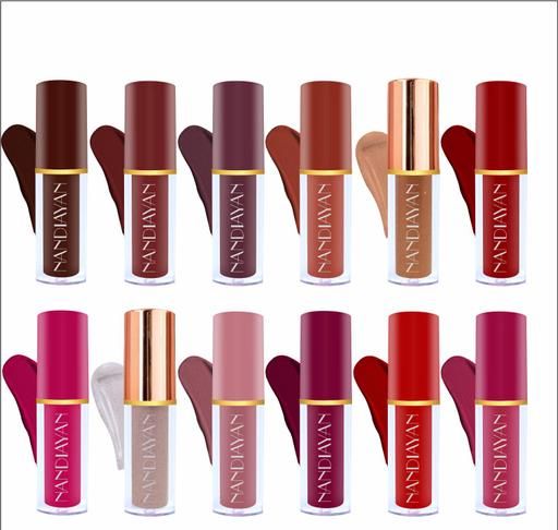 LIQUID LIPSTICK SET OF 12, matte lipstick, red lipstick, multi color lipstick pack of 12, non transfer brown, red , pink , wine , dark brown, nude shades lipstick
