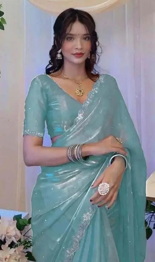 Barbari Silk Siroski and Hand Work Saree with Blouse Piece