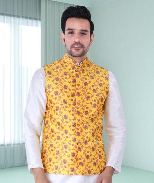 Name: Modern Men Ethnic Jacquard Modi Jacket/Trendy Men Ethnic Jacket/Jacquard Nehru Jacket/Nehru Jacket/Waistcoat for Men/Print Coat/Coat for Men/Coti for Men/Print Jacket/Flower Style Jacket/Ethnic Nehru Jacket