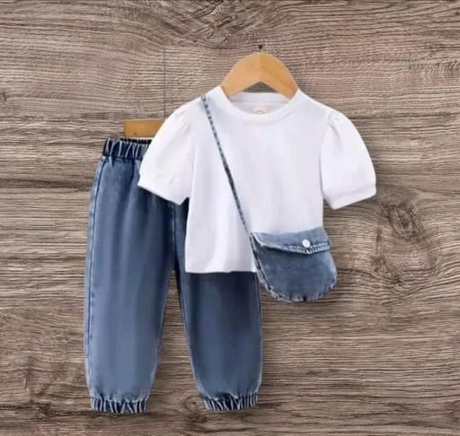 Name: pretty Elegant Girls Top and Jeans Whit Bug Set