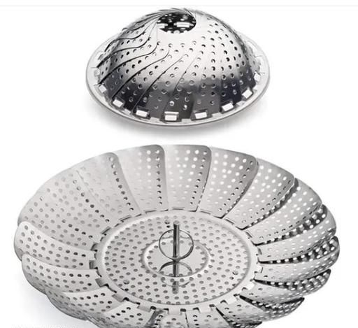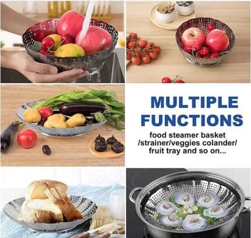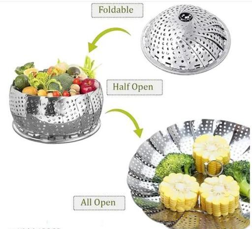 Name: Steamer Basket Stainless Steel Steamer for Vegetable/Insert for Pots, Pans steam boiling | Foldable Vegetable Steamer for Cooking to Fits Various(Silver, Pack of 1)