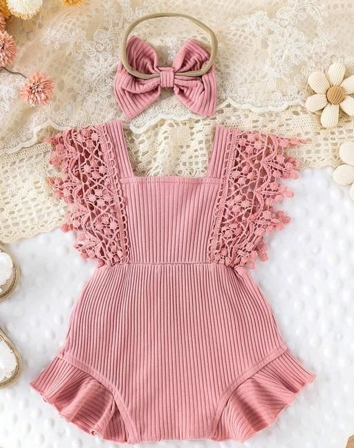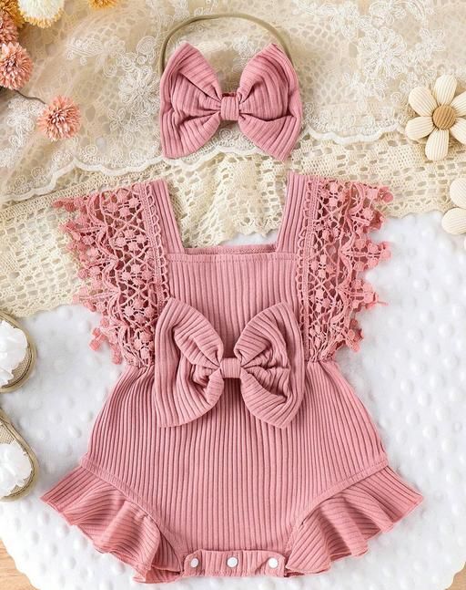 Adorable And Sweet Baby Girl Breathable Solid Color Bodysuit With Water-Soluble Lace And Headband, Suitable For Casual Parties, Vacations, new born clothing, baby dress, baby coth, new born baby romper, romper, diper dress, huggies dress, cloth for new born baby, baby romper, 0 months romper, 6 months romper, cloth for 2 months baby