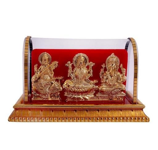 Name: Gold Plated Idols Laxmi Ganesh Murti Ma Saraswati for Home Decor Pooja Room Study Table Living Room & Office Decoration Gift Item