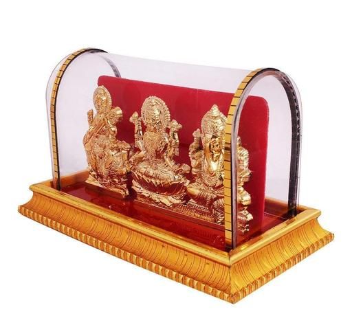 Introducing the Awesome Craft Gold Plated Idols: Enhance the aura of your home decor, pooja room, study table, living room, or office with these exquisite Laxmi Ganesh Murti Ma Saraswati idols. Meticulously crafted with gold plating, these idols exude elegance and spirituality. Perfect as a decorative piece or for religious ceremonies, these idols will add a touch of divinity to any space. Ideal for gifting, this meticulously crafted piece is sure to bring joy and prosperity to your loved ones. Elevate your surroundings with these enchanting gold plated idols.