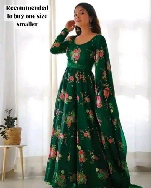 Name: Flower Print Long Gown With Dupatta (No Bottomwear)