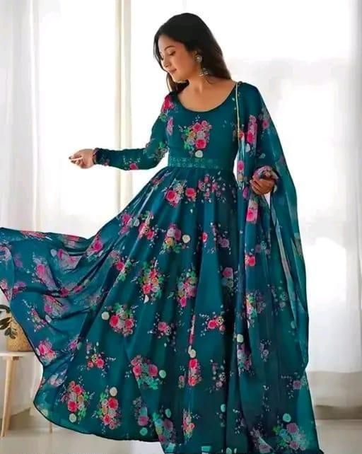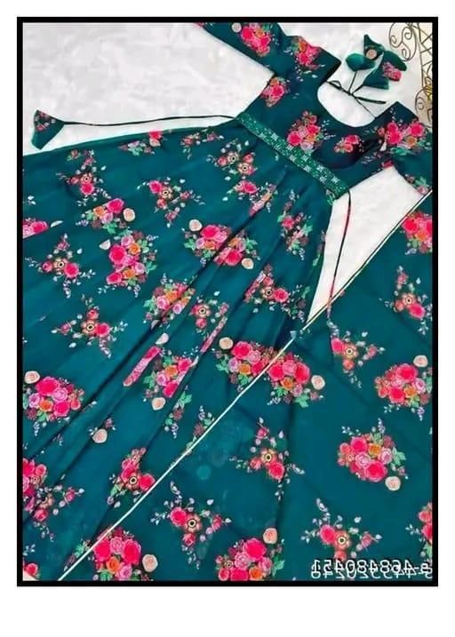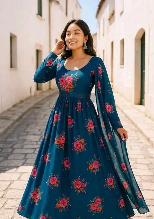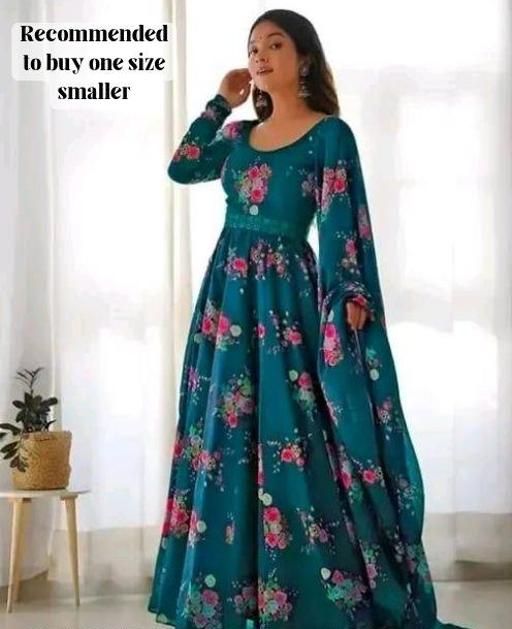 Name: Flower Print Long Gown With Dupatta (No Bottomwear)