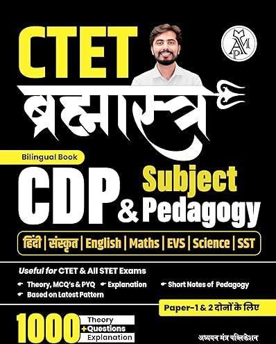 This “CTET BRAHMASTRA “ is a complete CDP THEORY + MCQ book for those aspirant who are going to appear in upcoming CTET and other TET Exams . Book is for both Paper 1 & 2 and as per latest pattern of CTET 2024. It is bilingual (Hindi + English) in language for better conceptual understanding. This book consists of 1000+ MCQ’s which will serve as a Practice Tool to Crack CTET Exam. Since these questions are from the previous years’ papers, you will also get to know the difficulty level of exams. Book Highlights: - Comprehensive Topic wise CDP along with PYQ - Subject Pedagogy: Hindi, English, Sanskrit, EVS, Maths, Science, SST - 5 CDP PYQ SETS (2023-24) - Exam Booster MCQ Practice from this book and Ace your CTET exam easily.